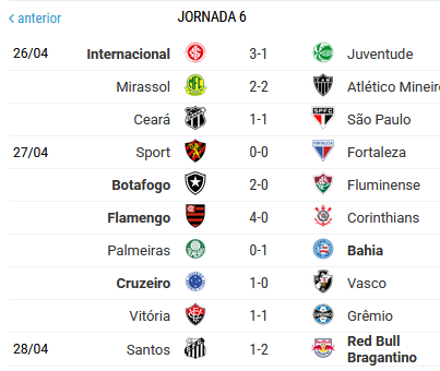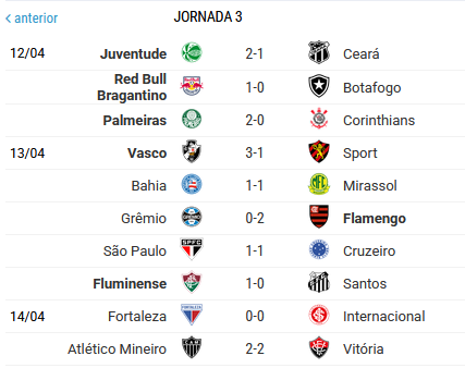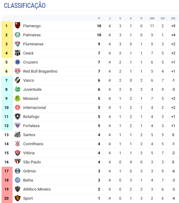 Flamengo ocupa a 1ª posição, seguido do Cruzeiro e Red Bull Bragantino a 1 ponto!!